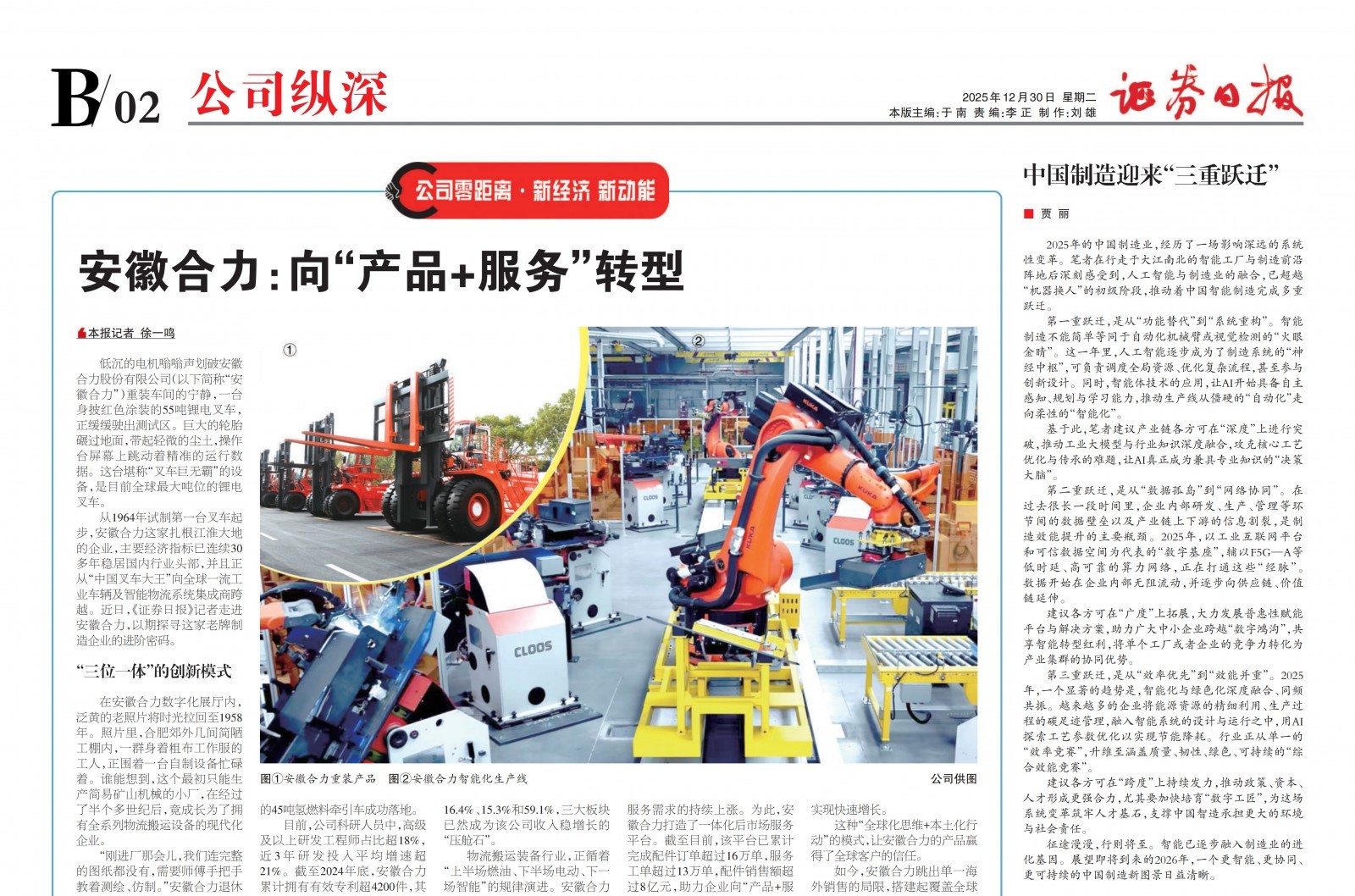 走進安徽合力股份有限公司(安徽叉車集團核心控股子公司)新能源智能工業(yè)車輛產業(yè)園內,記者看到裝配車間的焊接機器人正依據(jù)指令精準地進行車輛焊接。在總控室的大屏幕上,每臺設備的運行參數(shù)、能耗數(shù)據(jù)正實時變動,AI系統(tǒng)會根據(jù)訂單數(shù)量自動調整生產節(jié)奏。  ...